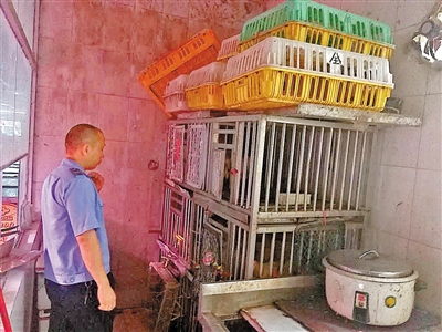 执法人员核实活禽数量。