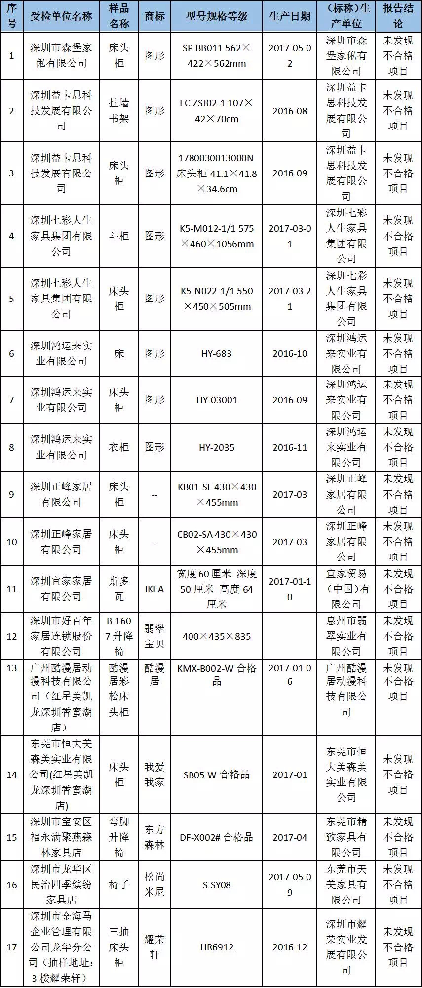 记者26日从深圳市市场和质量监管委获悉,2017年儿童家具产品质量监督抽查结果日前公布,本次监督抽查对象为深圳市生产和流通领域的14家受检单位20批次产品,经检验,合格产品17批次,不合格产品3批次。不合格项目有:孔及间隙、警示标识。其中,标称宜家贸易(中国)有限公司生产的“IKEA”福丽萨特儿童家具产品警示标识项目不合格。