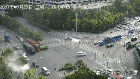 2017年9月23日下午,一辆牌号为粤B**862的泥头车正快速行驶在坂田五和大道上,来到梅关高速华为路口准备驶入高速。突然, 该车前轮冒出浓烟,而驾驶员似乎并未察觉。