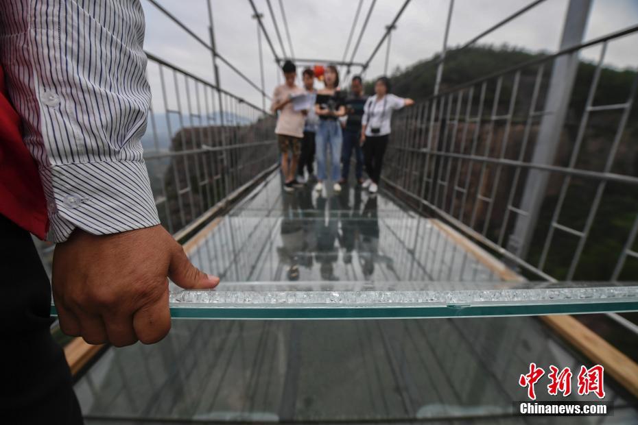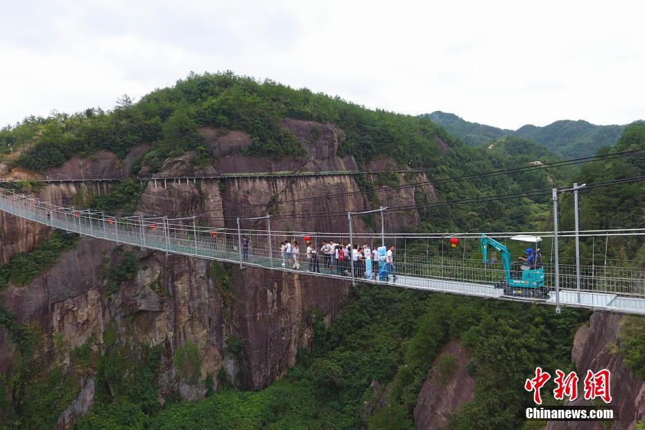 挖掘机开上全长300的玻璃桥。杨华峰 摄