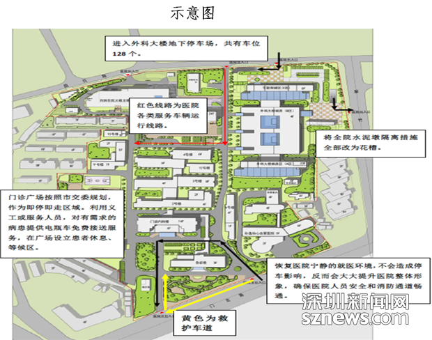 深圳市人民医院改造规划示意图,新增及优化调整的交通设施将于10月10日起全面启用