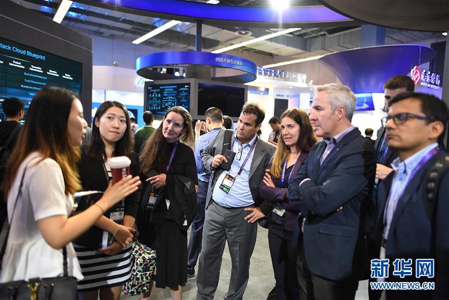 10月11日,嘉宾在2017杭州·云栖大会的展厅参观。华社记者 黄宗治 摄