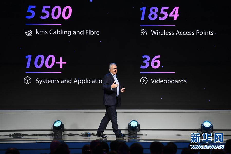 10月11日,国际奥委会首席信息技术官彭内尔在2017杭州·云栖大会上演讲。新华社记者 黄宗治 摄