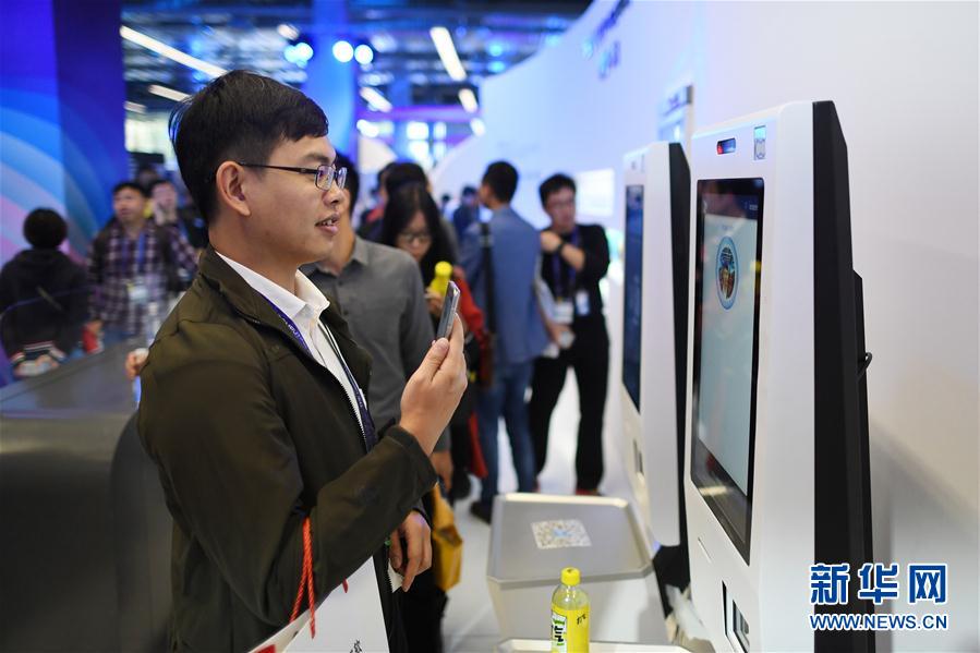 10月11日,观众在2017杭州·云栖大会的展厅体验“刷脸支付”。新华社记者 黄宗治 摄