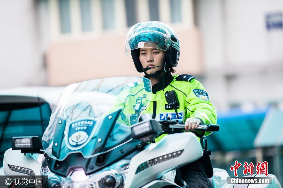 10月16日消息,郑熠炯今年24岁,是一名杭州交警机动队队员。她如今成了和AI(人工智能)搭档指挥交通的全国第一人,骑着260公斤的大摩托在杭州城里巡逻,自己体重却只有50公斤。图片来源:视觉中国