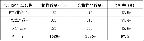 畜禽产品样品数量320份,样品合格率为99.4%;