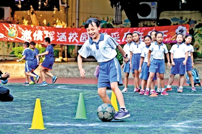 本报讯(龙华新闻记者 张瑜 通讯员 叶海蓉 左翼 文/图)近日,民治小学操场上,一年一届的校园足球班级联赛正在火热进行中。赛场上,小足球运动员奋力拼搏;赛场外,拉拉队员一刻不停呐喊助威。