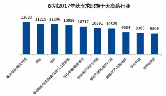 深圳新闻网讯 深圳哪个行业最有"钱途"?10月18日,由智联招聘发布的《2017年秋季深圳雇主需求与白领人才供给报告》(以下简称《报告》)显示,深圳地区2017年秋季求职期的平均薪酬为8666元/月,基金/证券/期货/投资的平均月薪最高,为11623元。