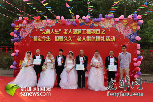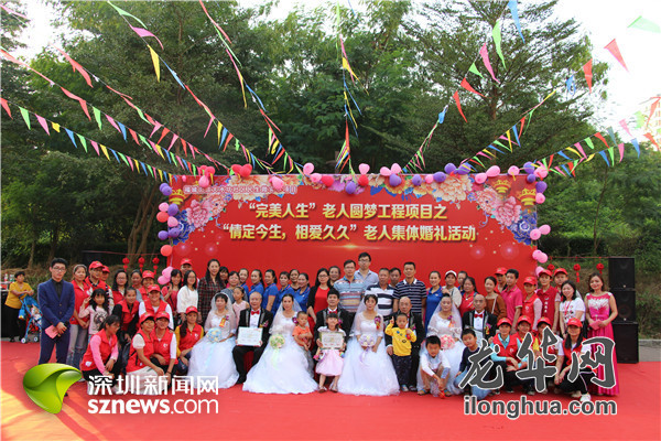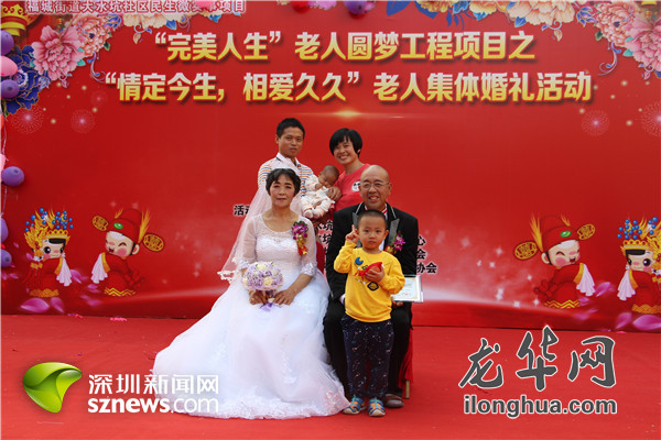 深圳新闻网10月29日讯(记者 杨维易 通讯员 赵倩 余敏 邓乐平)10月29日下午,在福城街道办事处的指导下,由大水坑社区工作站、大水坑社区党群服务中心和大水坑社区铭晨义工协会联合举办的民生微实事“完美人生”老人圆梦工程之“情定今生,相爱久久”老人集体婚礼活动在大水坑一村街心公园成功开展,共有4对老人在子女亲朋和社区居民的见证下,补办了一场婚礼,圆了期许已久的婚礼梦,感受了现代婚礼的浪漫温馨。