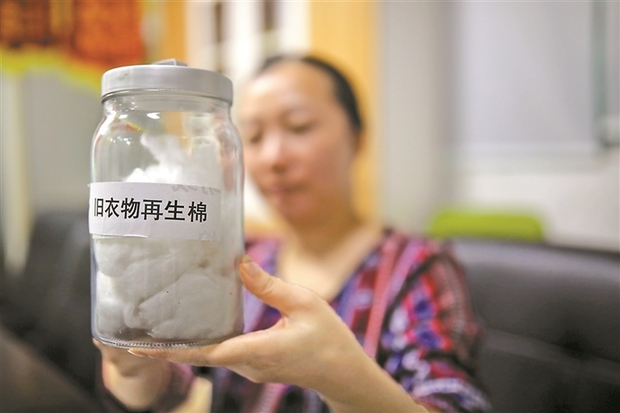 利用回收旧衣制作的再生棉。