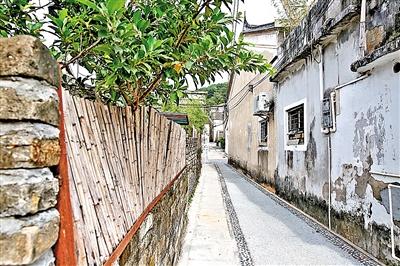 艺术涂鸦、绿色植物把古村装扮得很雅致。