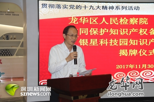 深圳新闻网11月30日(见习记者 郑瑞欣)11月30日下午,龙华区检察院与银星科技园共同签署保护知识产权备忘录,设立银星科技园派驻知识产权检察室。副区长陈建民、区人民检察院检察长杨时敏出席揭牌仪式。