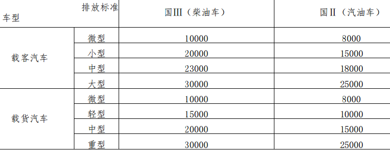 (一) 国Ⅲ排放标准的柴油车和国Ⅱ排放标准的汽油车补贴标准