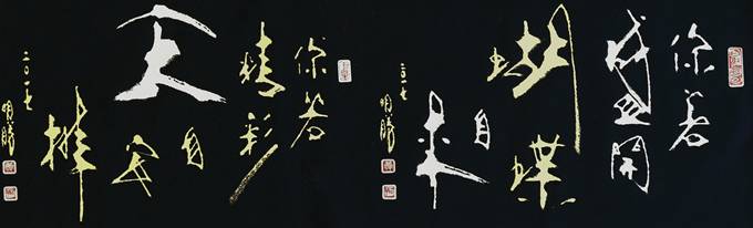 黄明胜从事书法与篆刻钻研已逾30年,他认为:美感的建立才是学习艺术的第一步,而非技法;奠定了美感的基础再从中建立自己的价值,随波不逐流。秉持『自出新意,不践古人』的理念,书写从未临帖,历经数十载,而今创作出融合中国传统艺术与现代风格的书法创新体裁—『书画体』。