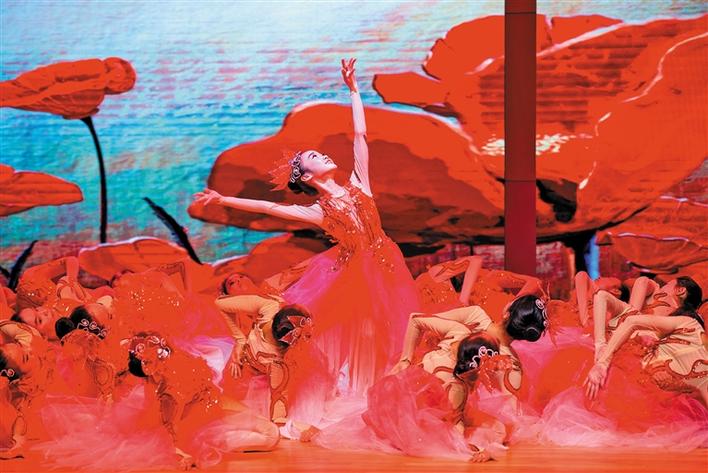 高峰学校舞蹈团表演的《凤凰花儿开》。