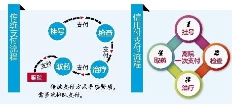 这种就诊模式下,院方提供支付宝、微信、医保、银联、各大第三方支付等多种支付渠道融合应用平台,全程可无现金看病;关于就诊费用,由系统按照医保、商保、新农合及自费自动分类,一次性结算,省去人工校验及分项多次缴费。患者具有长期信用积累和支付宝信用体系芝麻分双重信用保障;芝麻信用650分以上的“花呗”用户,“花呗”提供额外1000元的就医额度。