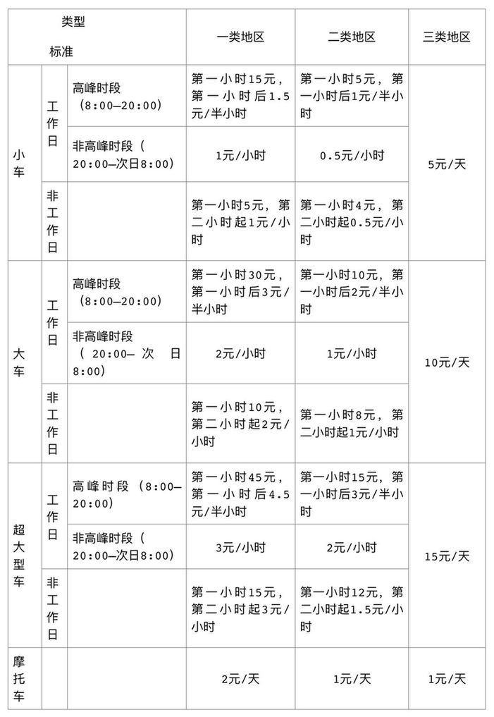 说明:1、执行上述收费标准的停车场包括:(1)由政府投资建设(含合资建设)的各类机关、事业单位办公场所的配套停车场,医院、学校配套停车场,政府投资建设(含合资建设)的公园、博物馆、图书馆、青少年宫、文化宫、体育场馆、音乐厅、影剧院、会展中心、新闻单位等场所配套停车场;(2)工业区、物园区配套停车场;(3)临时类停车场。
