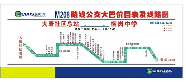 往大康社区总站:康乐路、横一路、横岗一号路、红棉路、康乐路、横岗康乐路、龙岗大道、横坪公路、沙荷路、公园路、山子下路、八斗路、奔康路
