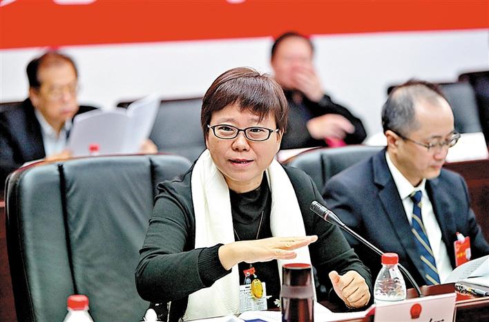 市人大代表杜红在分组讨论中发言。 龙华新闻记者 陈建华 摄