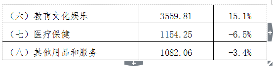 从消费支出构成看,八大类消费支出“三升五降”。其中,食品烟酒支出增长3.3%,恩格尔系数为30.0%,比上年下降0.5个百分点;居住、教育文化娱乐支出分别增长17.7%、15.1%;其他五类消费支出不同程度下降。(记者 沈勇)