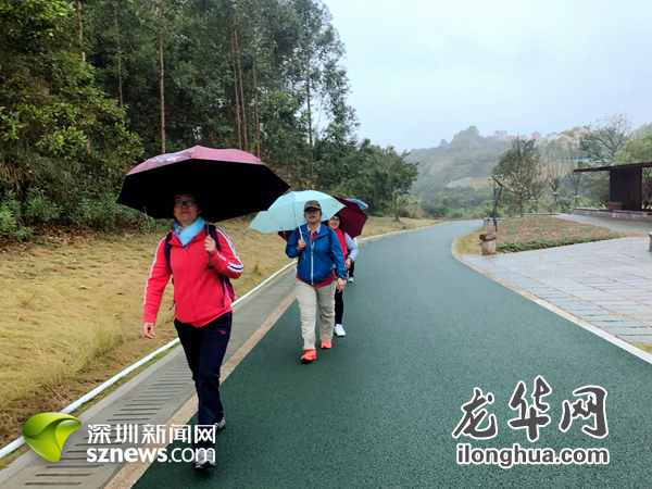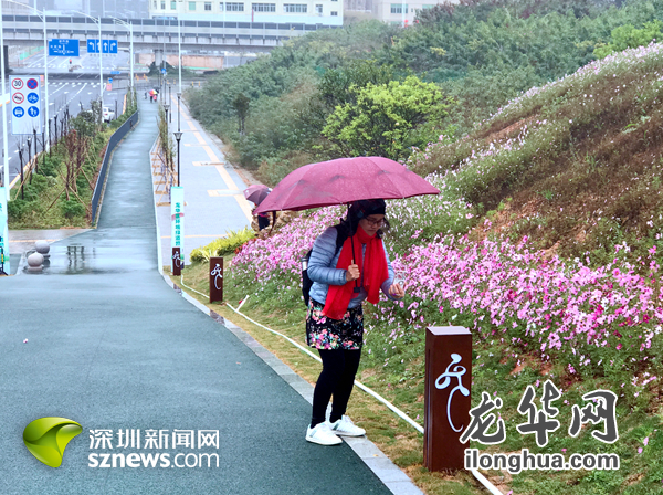 环城绿道的铺设可不简单,重点运用了海绵城市技术。记者来到绿道时正值下雨天,行走的过程中却并未发现雨水淤积现象。记者了解到,绿道铺设的透水路面,具有很好的雨水收集功能,可以保障路面行走和骑行的舒适度。工程人员还采用了被誉为“植被覆盖的集水、排水渠”的生态草沟技术,采用砖石透水铺装技术,保证了路面在暴雨时快速除水。所以就算是雨季,市民也可以放心地来龙华环城绿道走一走。
