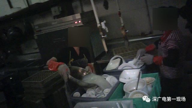 而洗碗的程序里,第一个环节是由两位阿姨手动清洗,记者多次发现,清洗盆里的水已经非常浑浊,仍然不换水,继续清洗。