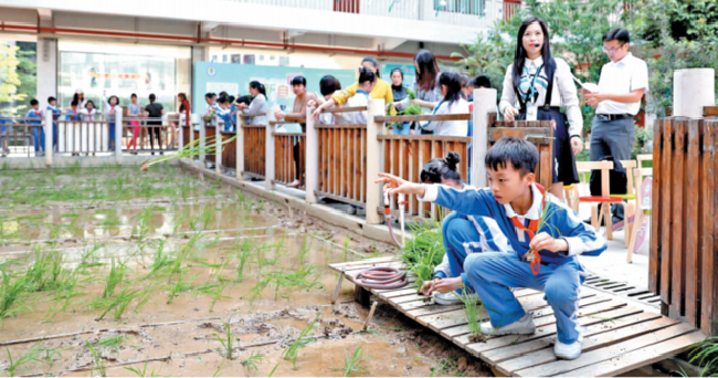 本报讯(龙华新闻记者 张瑜 通讯员 欧阳雪峰/文 记者 蔡维泽/图)4月4日,龙华区教科院附小迎来“清新自然课程”开课仪式,“稻田童话—抛秧”、综合实践蔬果种植、特色文化探究等系列活动有序开展,这也标志着该校以中国传统农耕文化为课程内容,以国际先进的教育理念为课程形式的“清新自然课程”正式启动。
