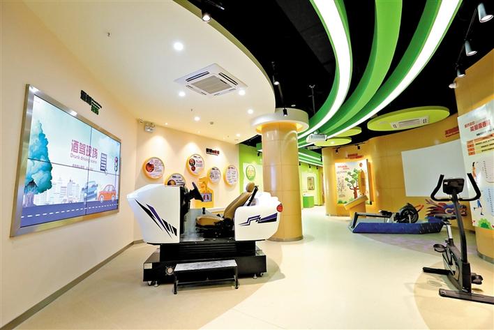 市民健康体验馆内设7大主题区域,图为戒烟与限酒主题区。