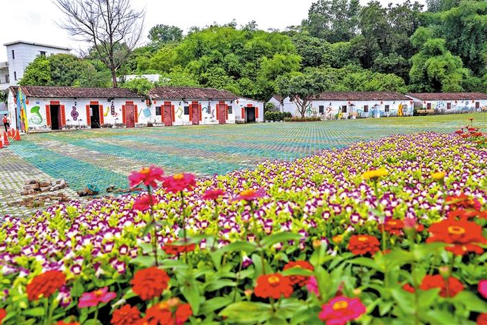 历史悠久的老村花朵开得灿烂,平添盎然生机,成为一道亮丽风景。