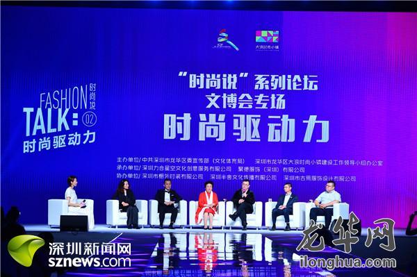 文博会大浪时尚小镇分会场开幕式上可谓是“有文有武”,“武”有四大品牌时尚走秀;“文”有圆桌论坛——“时尚说”。