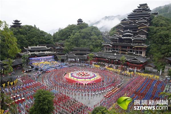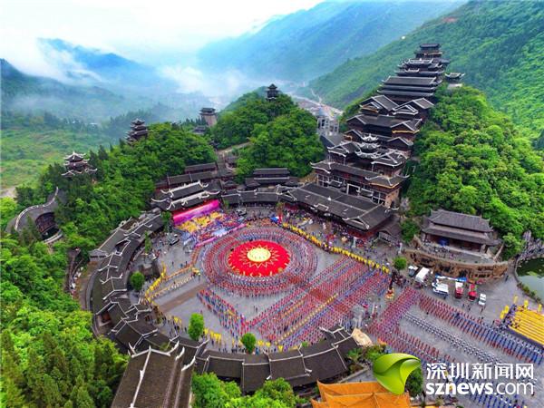 深圳新闻网5月22日讯(记者 卢东勃 通讯员 冉桐 李文科)“哥呀姐呀娇阿依,哥呀姐呀娇阿依,踩出那个年年好生活,娇阿依……”今(22)日上午,2018第七届中国乌江苗族踩花山节在重庆彭水自治县蚩尤九黎城盛大开幕,来自全国各地的近百家重点网络媒体的记者们齐聚一堂,观看了一场美轮美奂、富有苗族特色的视听盛宴。