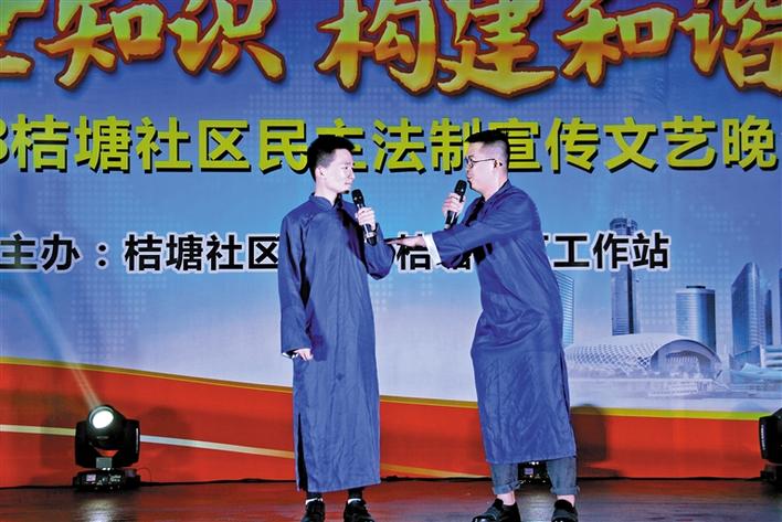相声表演《法在身边》。龙华新闻记者陈建华通讯员刘菲摄