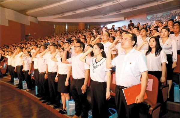 福城街道全体党员重温入党誓词。