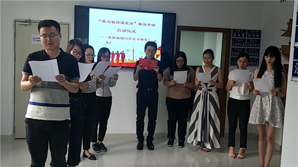 有位富士康工人在国庆前夕开展的万人参与“我为祖国读宪法”新型普法活动中,动情地说道“为祖国读宪法,在面对镜头朗读时有种强烈的庄严感、自豪感,祝福祖国这艘大船在宪法的保护中破浪前行!”