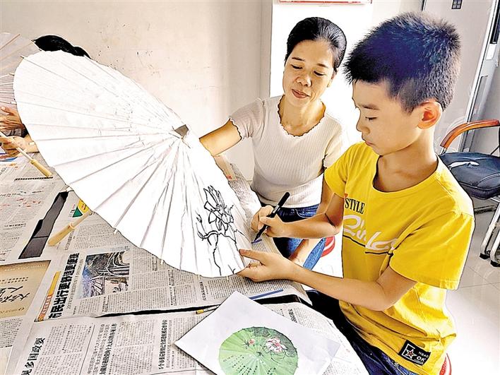 记者在现场看到,一位有一定绘画基础的小朋友拿到纸伞以后开始认真作画,其妈妈在绘画过程中有点跟不上节奏,小朋友不急不躁,反而充当小老师的角色,认认真真地教妈妈绘画和涂色的技巧。经过努力,不到半小时,母子俩便绘制好了一把独具江南古韵的纸伞。其他孩子也和父母一起,绘制出了一把把栩栩如生、充满想象的纸伞,纸伞上有卡通人物,有花草鱼虫,孩子们笑称为“独家纸伞”。