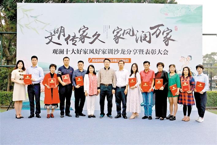 据介绍,近年来,观澜街道始终坚持以培育和践行社会主义核心价值观为引领,以创建主题活动为载体,通过多种形式传播好家训好家风好家庭,大力倡导“好家风”,崇尚礼敬“好家训”,让“好家风好家训”逐渐成为观澜的社会风尚和城市精神。观澜街道相关负责人表示,观澜具有浓厚的文化底蕴,开展传承好家风好家训系列活动,旨在深入挖掘观澜优秀家庭传统文化,引导人们弘扬传统美德,树立家国情怀,推动全社会形成注重家庭、注重家教、注重家风的共识,以“家风”带“乡风”,以“家风”促“作风”,以“家风”建“新风”,推进社会主义核心价值观入户生根,为建设新观澜新家园提供良好的社会环境与精神支撑。