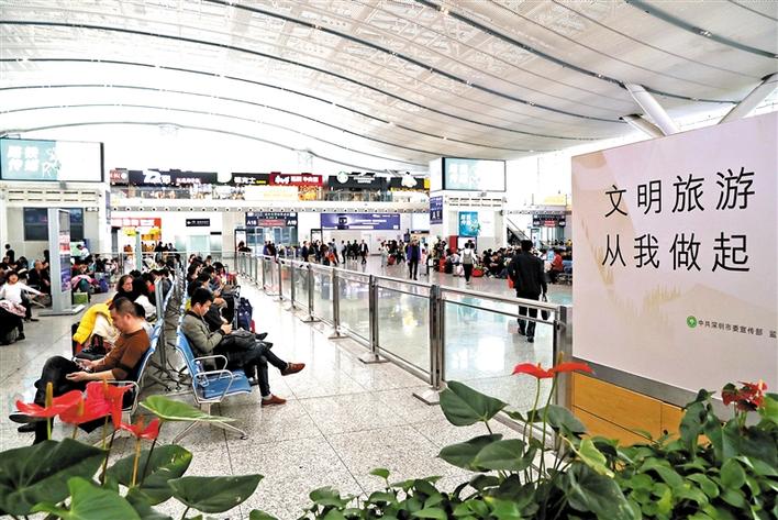 深圳北站候车大厅内“文明旅游 从我做起”等公益广告随处可见。