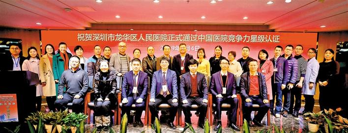 本报讯(龙华新闻记者 黄晓华 通讯员 郑婷 刘英东 文/图)“我宣布,经过现场认证专家组的投票表决,一致认为,深圳市龙华区人民医院基本达到‘五星级医院’标准,同意授予深圳市龙华区人民医院‘五星级医院’称号。”1月4日,艾力彼医院管理研究中心认证专家组对龙华区人民医院星级医院认证情况进行反馈,宣布该院正式通过中国医院竞争力星级认证,成为龙华区域内首家通过五星级认证的三级医院。