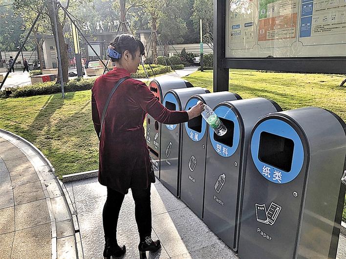 图为市民进行垃圾分类投放。