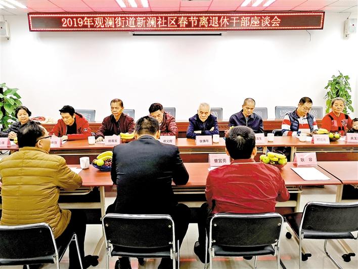 本报讯(龙华新闻记者 吴春华 通讯员 李晓宝 何向丹 文/图)为弘扬关心爱护老干部的光荣传统,加强与离退休老干部的联系沟通,听取他们对社区建设发展的意见建议,更好地服务辖区居民。1月23日上午,观澜街道新澜社区党委举办迎新春离退休老干部座谈会,该街道挂社区工作组领导、新澜社区离退休老干部、新澜社区党委班子成员等16人参加。