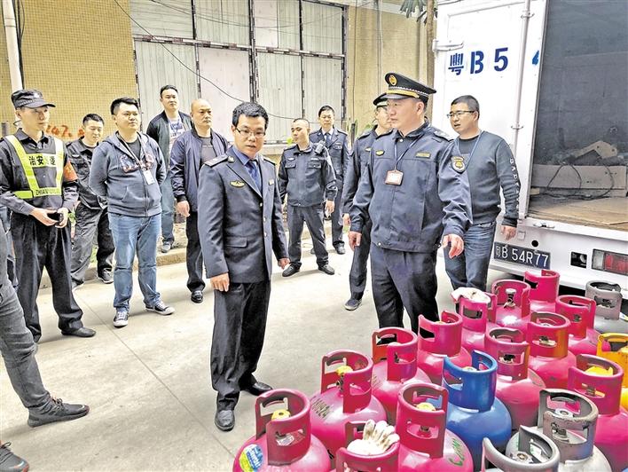 13日上午,由松和社区牵头、多部门参加的综合整治行动在松和社区共和花园进行,工作人员在一楼某店铺发现存在销售黑煤气行为,经清点,有15Kg装煤气9瓶、5Kg装煤气10瓶,全部由执法队查扣,该店铺负责人被油松派出所带回做进一步调查处理。