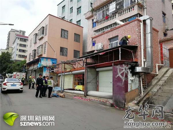 拆除新塘片区路网新塘市场周边已征临街商铺。