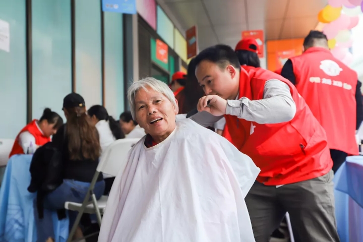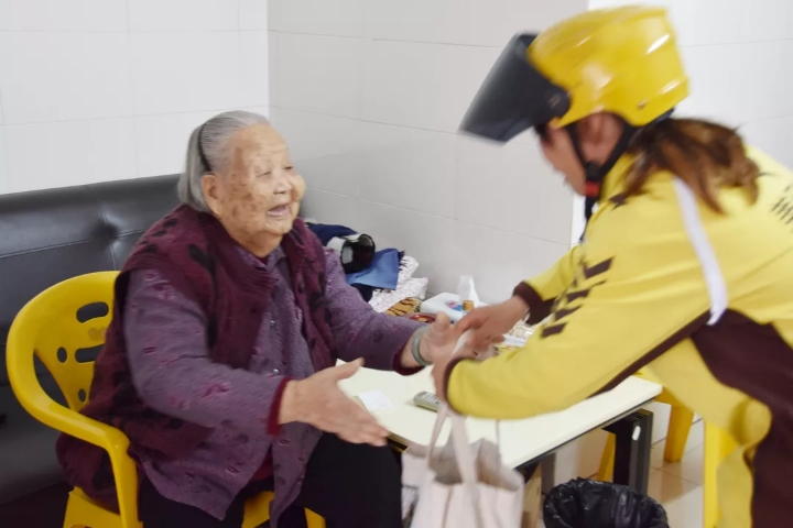 外卖配送员志愿服务队整装出发为孤寡老人配送爱心水果的同时,生活节如火如荼开展。