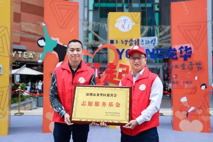 随后进行的生活节启动仪式上,区慈善会党支部书记房品新授牌龙华区志愿服务基金管委会,志愿服务基金正式成立。