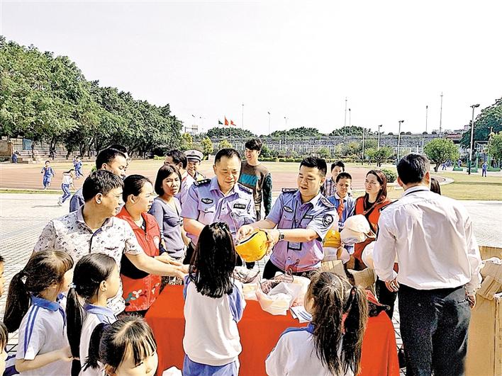 本报讯(龙华新闻记者 吴春华 通讯员 曾伟灵 柯遵群 文/图)为深入宣传普及交通安全知识,提升广大市民群众交通安全意识,4月2日下午,观澜街道办联合龙华交警大队走进观澜桂花小学,共同开展“戴头盔保安全”学生家长安全骑行电动自行车宣传活动。