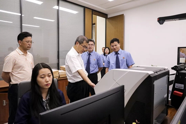 黄启键一行参观了12309检察服务中心、案件管理中心和未成人检察工作区,了解了远程视频工作、大数据决策分析系统等情况,听取了宣传工作汇报。他充分肯定区检察院各项工作成效,认为其工作重效率,注重智慧检务建设;重服务,维护企业和群众利益;重文化,单位文化氛围浓厚。