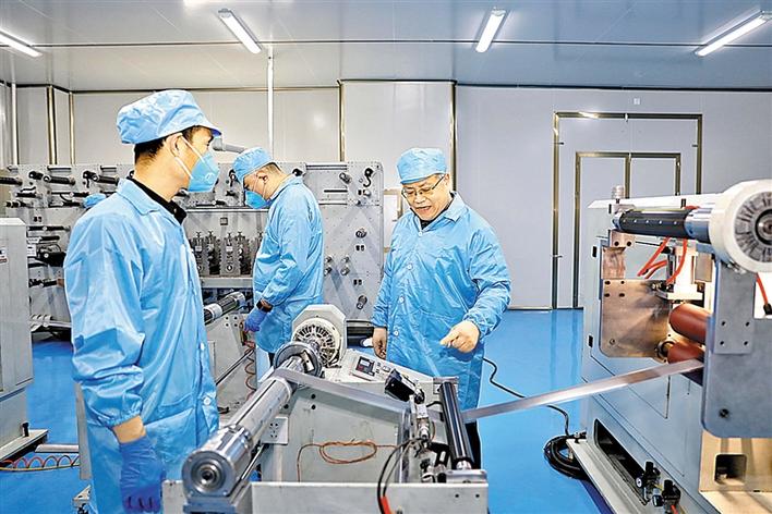 紫荆1号双创园闵永刚教授团队在生产车间调试设备。