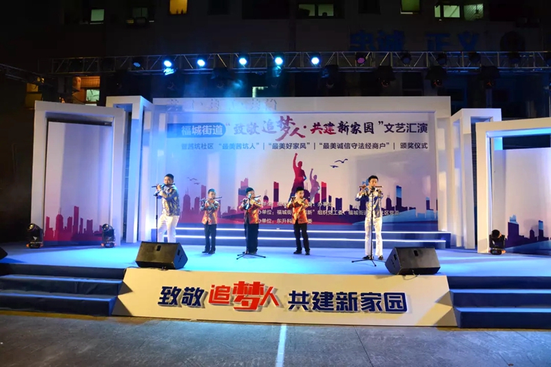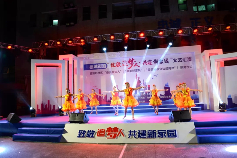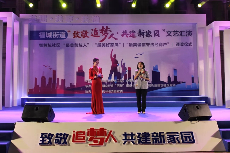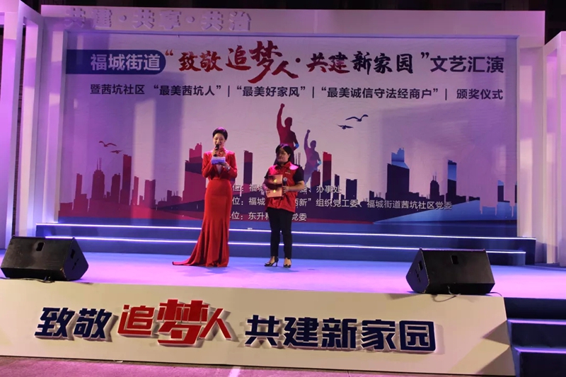 深圳新闻网讯 (记者 陶倩 通讯员 沈婷) 他们拥有最朴实的笑容,最忙碌的身影,最美的心灵,为生活和梦想而努力奋斗,他们在各自的岗位发挥着先锋模范作用。5月10日晚,福城街道茜坑社区党委联合街道“两新”组织党工委、东昇科技园党委在东昇科技园开展“致敬追梦人共建新家园”文艺汇演暨茜坑社区“最美茜坑人”、“最美好家风”、“最美诚信守法经商户”颁奖仪式。