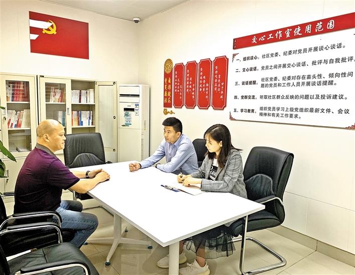 阵地宣传小而精、小而美,福民社区的硬件建设同样值得称道。在福民社区工作站一楼,该社区纪委专门辟出总面积18平方米的交心工作室,并配备洽谈桌、空调、监控摄像头。这个全区独一无二的交心工作室,已经发挥了它的作用。记者获悉,福民社区纪委将基层治理临时党支部建设和交心谈话相结合,对于基层治理中存在的消防、安全等隐患,请来相关功能组人员进行谈话,督促功能组人员发挥带头作用,督办工作开展情况。“这项工作成效非常显著,经过交心谈话,基层治理的战斗力和工作成绩均有显著提升。”陈曦说。