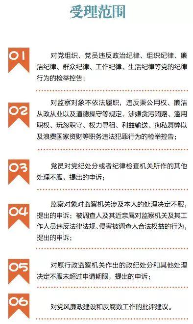 据市纪委监委信访室有关负责人介绍,有六类信访举报问题是纪检监察机关明确可以受理的。